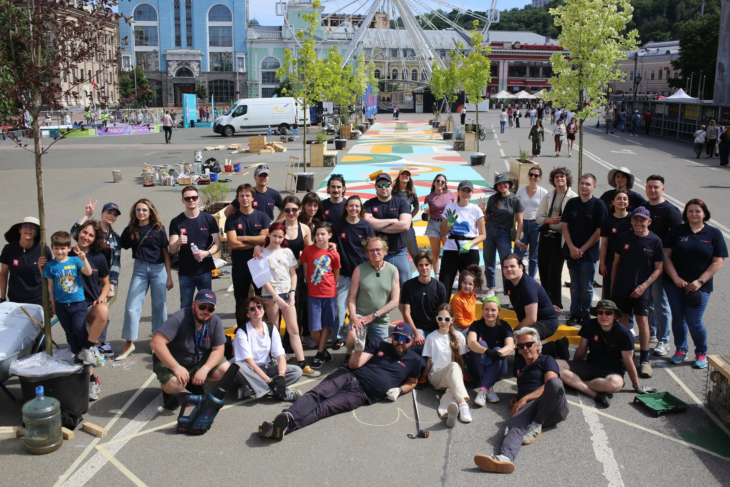 In the heart of Kyiv’s historic Podil district, something extraordinary has taken shape. On 11,000 m² of lifeless asphalt once scorched by summer heat and neglect, we built a square—not just of wood and paint, but of possibility. This is TORV Kyiv. A tactical urbanism project from Denmark to Ukraine with love - built under daily threat of missile strikes. Funded entirely by private donors. Designed by a tiny team. Constructed by volunteers from 18 countries. No renderings. No masterplans. Just urgency and action.